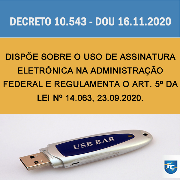 Home Blog DECRETO FEDERAL Nº 10.543, DE 13.11.2020 – Dispõe sobre uso de assinaturas eletrônicas na administração pública federal, e regulamenta o art. 5º da Lei nº 14.063, de 23.09.2020.