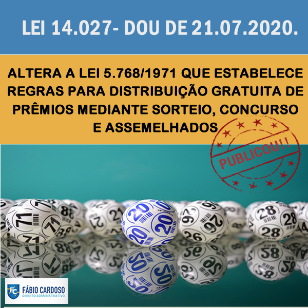 LEI Nº 14.027, DE 20.07.2020, ALTERA A LEI Nº 5768, DE 20.12.1971, QUE ESTABELECE REGRAS PARA DISTRIBUIÇÃO GRATUITA DE PRÊMIOS, MEDIANTE SORTEIO, VALE-BRINDE, OU ASSEMELHADOS, REALIZADA POR CONCESSIONÁRIAS OU PERMISSIONÁRIAS DE SERVIÇO DE RADIOFUSÃO OU POR ORGANIZAÇÕES DA SOCIEDADE CIVIL.